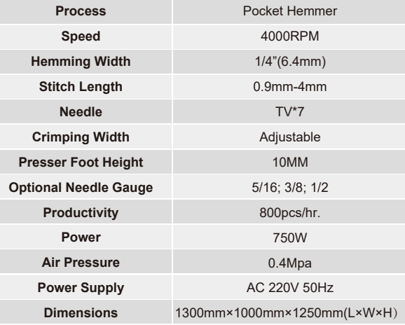 1. No hemming exposed, adjustable hemming width, different needle gauge can be replaced.